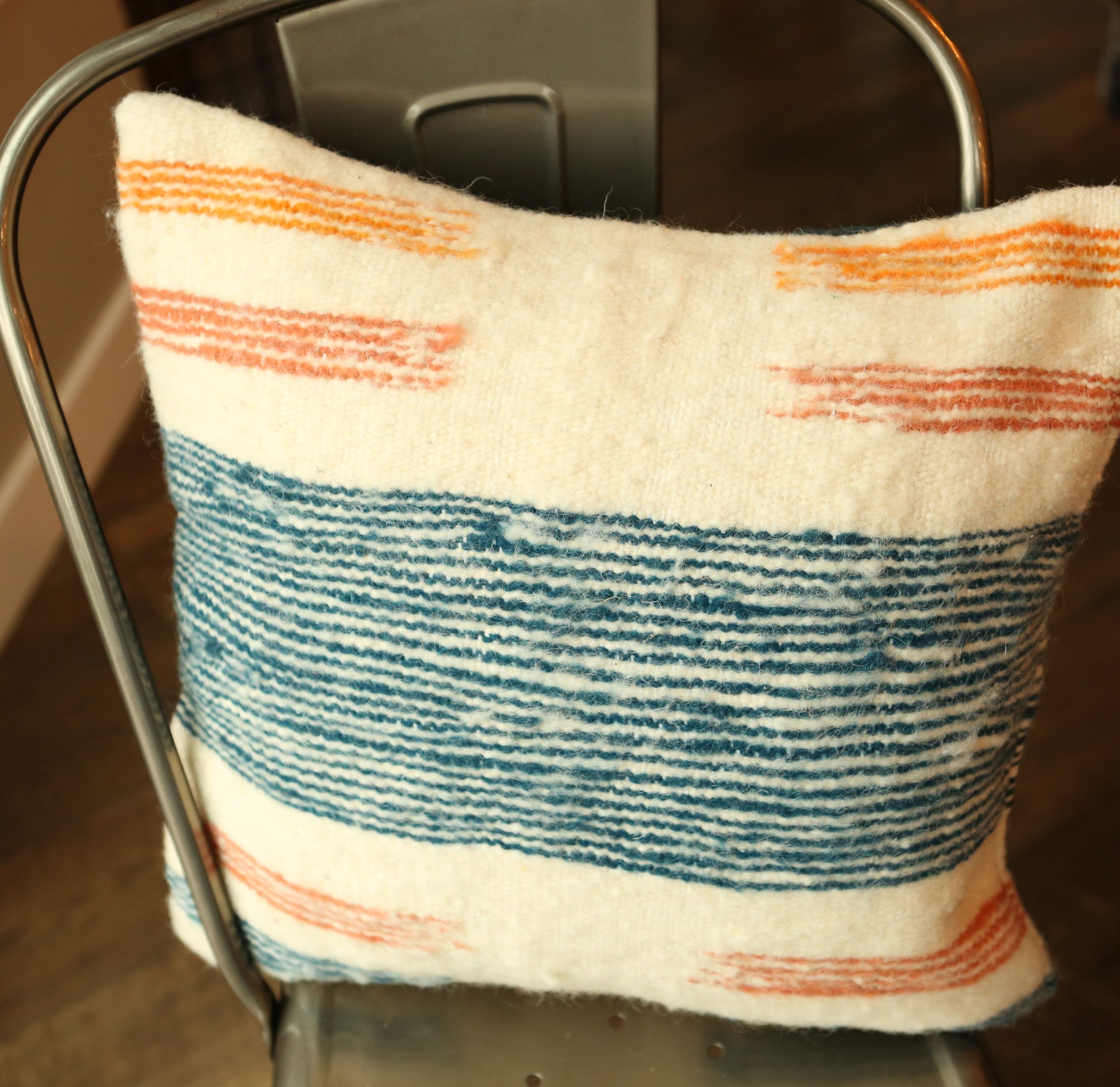 Paloma Pillow - Handwoven Tassel Cushion in Pink & White